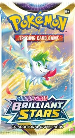 Each booster pack contains 10 new cards from the set Brilliant Stars!