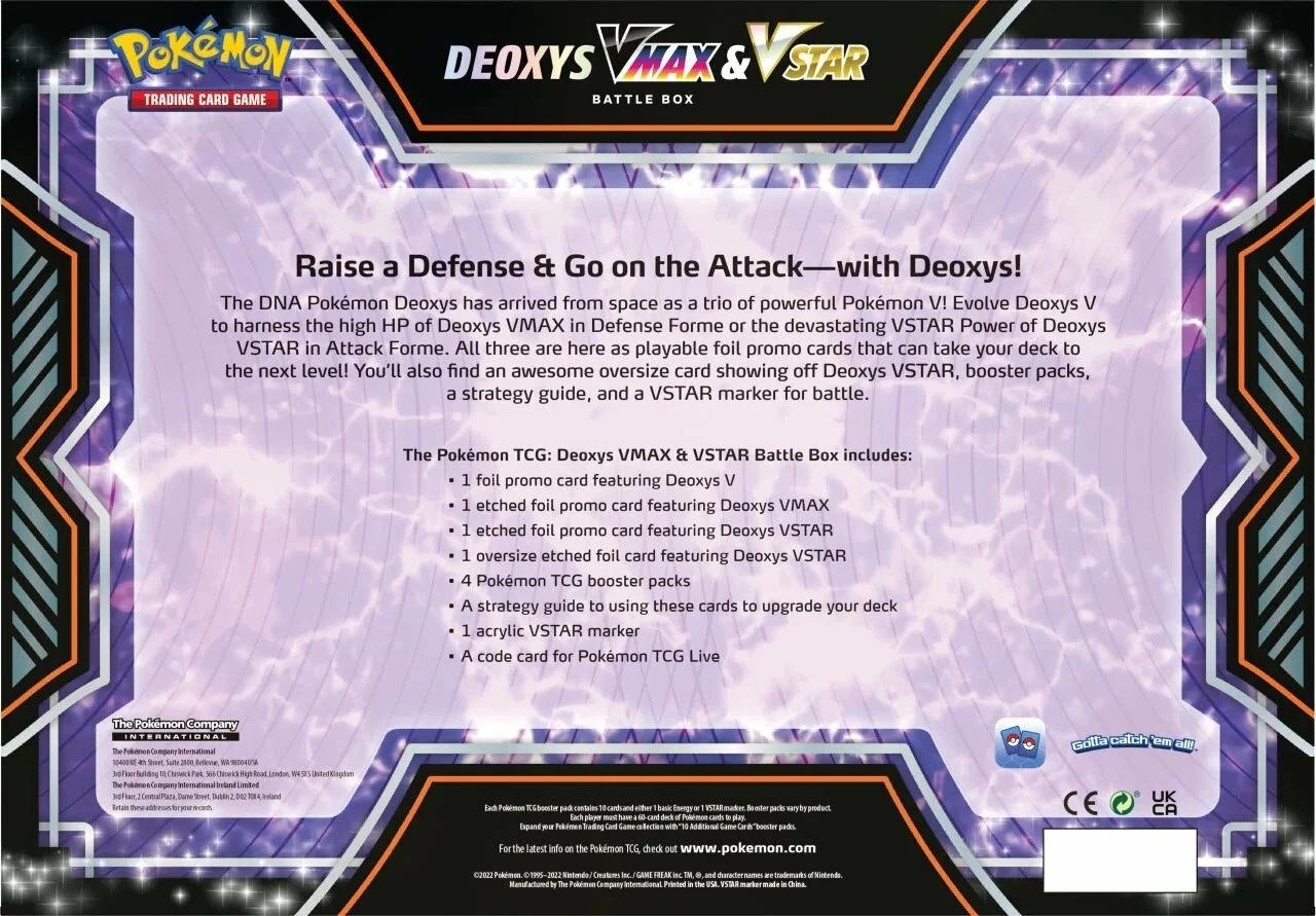 Each Pokémon TCG: Deoxys/Zeraora VMAX & VSTAR Battle Box includes:
