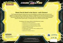 Pick a Mythical Pokémon to stand by your side—each one arrives as a trio of powerful Pokémon V that can take your deck to the next level! You can evolve Deoxys V to harness the high HP of Deoxys VMAX in Defense Forme or the devastating VSTAR Power of Deoxys VSTAR in Attack Forme—or evolve Zeraora V to counter your opponent’s strategy with the hard-hitting attacks of Zeraora VMAX or the lightning-striking VSTAR Power of Zeraora VSTAR. You’ll also find an awesome oversize card showing off the featured Pokémon VSTAR, booster packs, a strategy guide, and a VSTAR marker for battle.