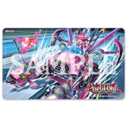 Get ready to cheer on and support your favorite racer with the official Yu-Gi-Oh! TRADING CARD GAME Gold Pride – Chariot Carrie Game Mat, showcasing the dynamic artwork of Gold Pride – Chariot Carrie, an upcoming card from this May’s core booster release: Cyberstorm Access!